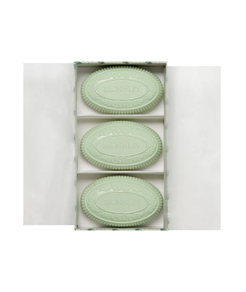 3 x 100g feuchtigkeitsspendende Seife aus der klassischen Bronnley English Fern Serie. Hergestellt aus 100% zertifiziertem nachhaltigem Palmöl.