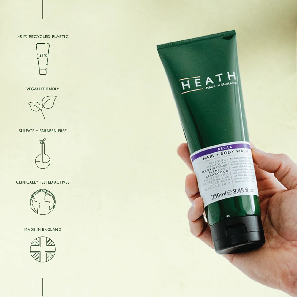 Heath London ist eine moderne Pflegemarke für den urbanen Mann. Das Sortiment umfasst Feuchtigkeitscremes, Gesichtsreiniger sowie Haar- und Körperpflegeprodukte und bietet Schutz gegen Umweltbelastungen wie Luftverschmutzung und Blaulicht von Bildschirmen. Heath London setzt auf Nachhaltigkeit, vegane Inhaltsstoffe und verzichtet auf Parabene und Sulfate.