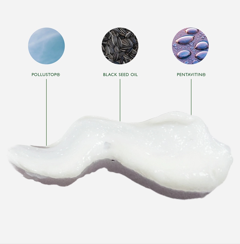 Diese Haarpaste enthält Pollustop zum Schutz vor Umweltbelastungen, Schwarzkümmelöl zur Pflege der Kopfhaut und zur Unterstützung des Haarwachstums sowie Pentagon zur Stärkung der Haarsträhnen für ein gesünderes Styling.