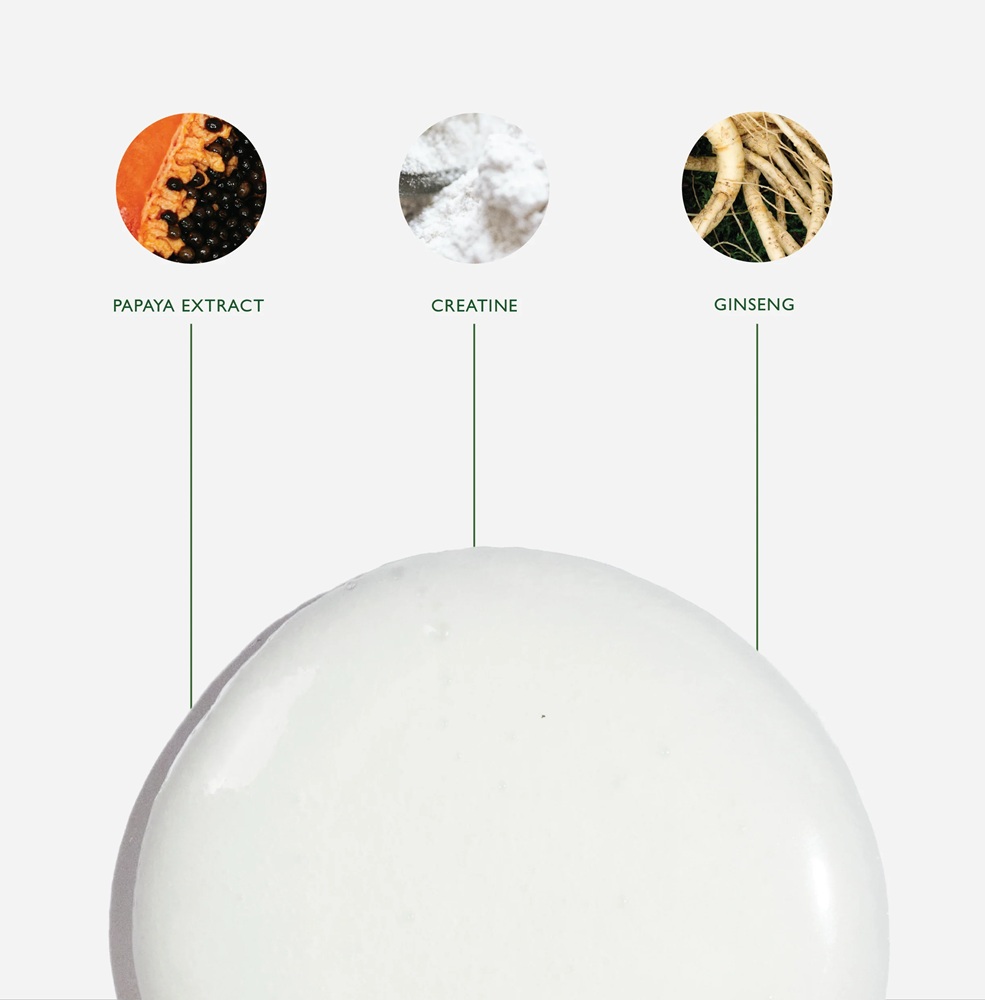 Aqua (Water), Sodium C14-16 Olefin Sulfonate, Cocamidopropyl Betaine, Coco-Glucoside, Parfum (Fragrance), PEG-40 Hydrogenated Castor Oil, Acrylates/Palmeth-25 Acrylate Copolymer, Phenoxyethanol, Sodium Hydroxide, Chlorphenesin, Limonene, Disodium EDTA, Glycerin, Citral, Geraniol, Linalool, Creatine, Butylene Glycol, Panax Ginseng Root Extract, Tocopheryl Acetate, Hippophae Rhamnoides Oil, Caffeine, Carica Papaya (Papaya) Fruit Extract, Potassium Sorbate, Sorbic Acid, Helianthus Annuus (Sunflower) Seed Oil, Rosmarinus Officinalis (Rosemary) Leaf Extract.